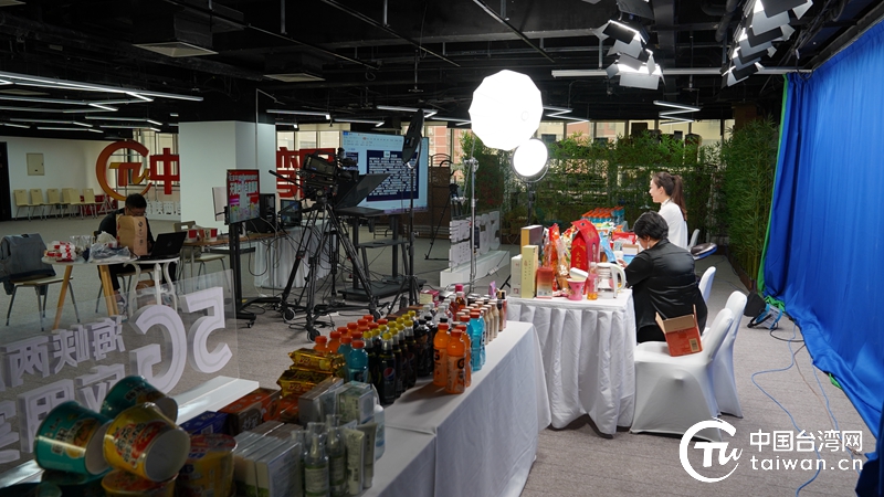 第三屆“920就愛你”海峽兩岸電商購物節(jié)-天津臺博會直播專場20日進(jìn)行首場直播。圖為位于海峽兩岸5G融媒體應(yīng)用實驗室的直播現(xiàn)場。