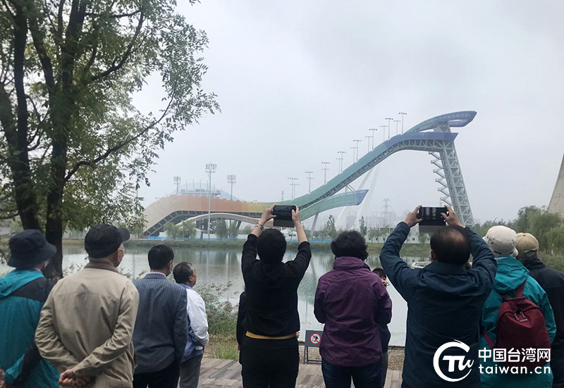 參加活動臺胞遠(yuǎn)眺首鋼滑雪大跳臺。(中國臺灣網(wǎng) 普燕 攝)