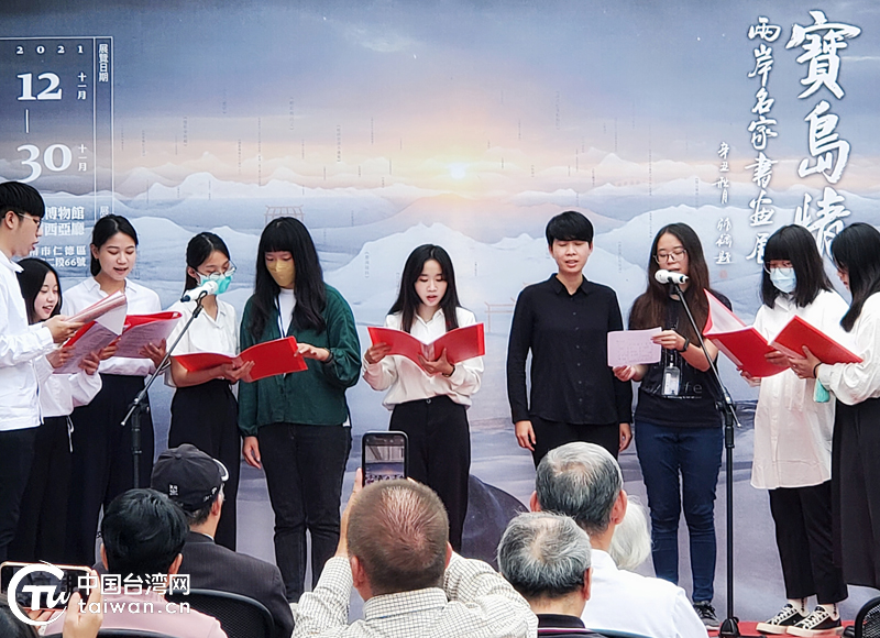 最后,中華兩岸和平發(fā)展聯(lián)合會主席潘朝陽教授做結(jié)發(fā)言,開幕儀式在詩歌朗誦隊獻唱《少年中國》之后結(jié)束,全體與會人員移步展場觀賞書畫作品。