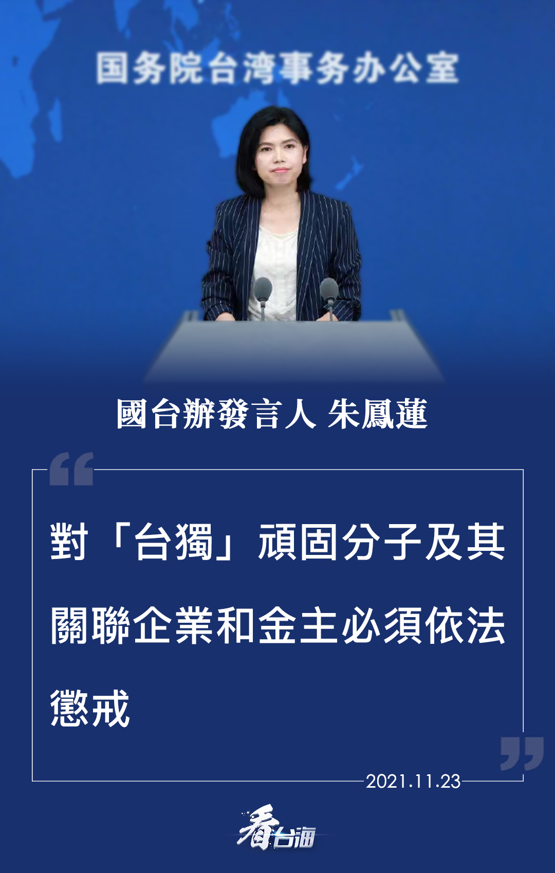 11月22日,上海、江蘇等省市執(zhí)法部門對臺(tái)灣遠(yuǎn)東集團(tuán)在當(dāng)?shù)赝顿Y企業(yè)存在違法違規(guī)行為進(jìn)行了查處。消息一出,立即引發(fā)網(wǎng)絡(luò)熱議。對此,國臺(tái)辦發(fā)言人朱鳳蓮再次強(qiáng)調(diào),對“臺(tái)獨(dú)”頑固分子及其關(guān)聯(lián)企業(yè)和金主必須依法懲戒。“吃飯?jiān)义仭钡闹С帧芭_(tái)獨(dú)”者必須付出代價(jià)!