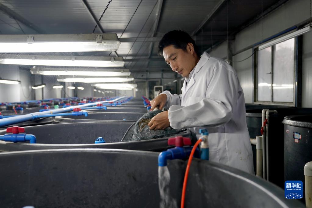 上海海洋大學(xué)吳旭干教授在查看種蟹狀況(11月25日攝)。新華社記者 劉穎 攝