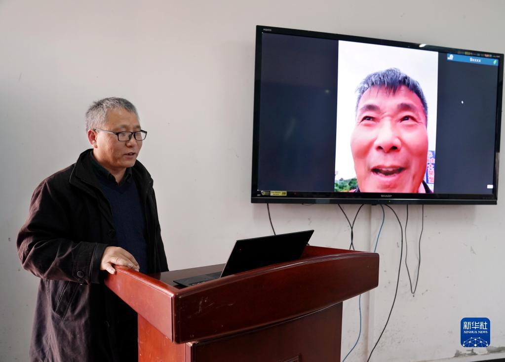 上海海洋大學(xué)成永旭教授連線苗栗縣蟹農(nóng)代表,了解今年的銷(xiāo)售情況(11月25日攝)。新華社記者 劉穎 攝