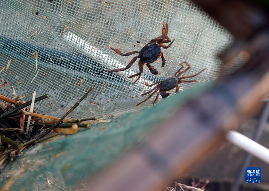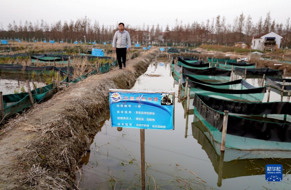 這是11月25日在上海海洋大學(xué)崇明基地拍攝的扣蟹實(shí)驗(yàn)池塘。新華社記者 劉穎 攝