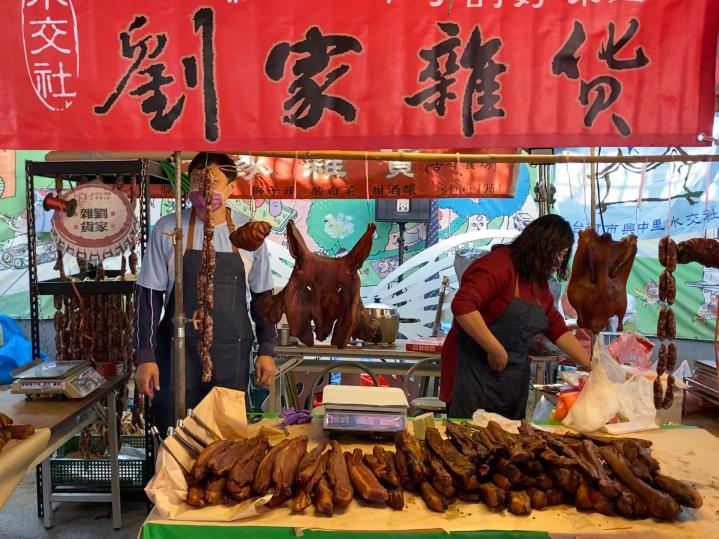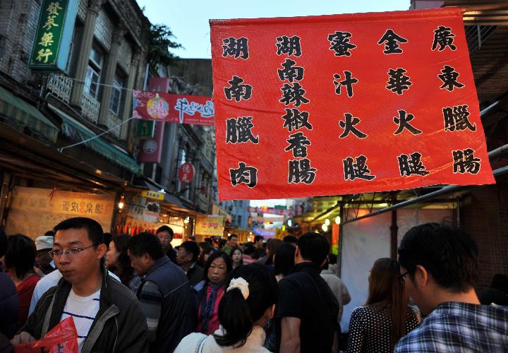 臺南眷村年貨大街13日就正式開賣。從湖南臘肉、四川香腸、金華火腿、山東大餅、港式臘味,到泡菜、酸白菜、糖果餅干,應(yīng)有皆有,讓人眼花繚亂。開賣第一天就涌現(xiàn)人潮,顧客大包小包購買,解饞之余,也解鄉(xiāng)愁。
