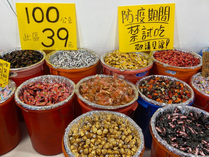 因應(yīng)疫情,島內(nèi)各地年貨街升級防疫措施。臺北迪化街不搭棚架,騎樓街道不開放設(shè)攤;臺中天津商圈、一中商圈、逢甲商圈年貨街規(guī)定,民眾全程佩戴口罩、禁止飲食、不開放試吃;臺南年貨街現(xiàn)場則使用隔板設(shè)置試吃專區(qū)。