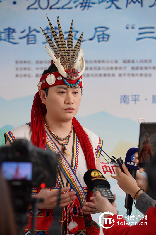 “期許這次云端三月三之約,展現(xiàn)兩岸民族文化的美美與共!迸_灣阿美青年楊品驊身著民族盛裝亮相,他對中新網(wǎng)記者表示,臺灣也有很多族人致力于部落營造,但民族文化的傳承需要依賴更大的市場,“來到福建,不管是部落文創(chuàng)品還是農(nóng)特產(chǎn)品,都走得更遠!