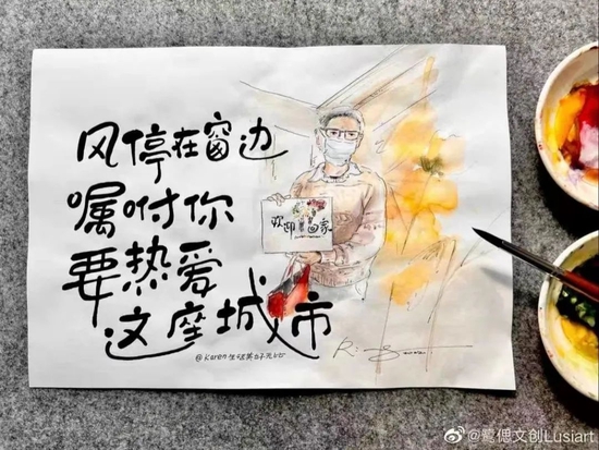 上海本輪疫情中,周俊一直和同伴堅守在抗疫一線。大家的鼓勵和支持,讓周俊非常感動,她在朋友圈曬出了2020年的這幅宅手繪作品。