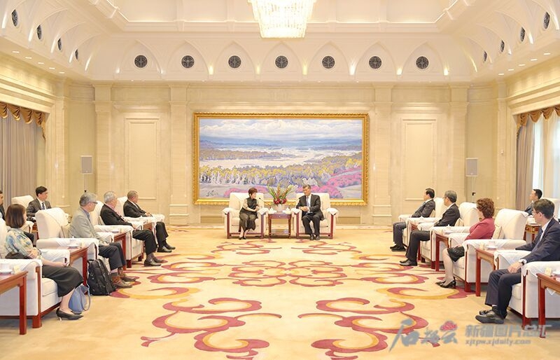 石榴云/新疆日?qǐng)?bào)訊(記者 王興瑞報(bào)道)自治區(qū)黨委書(shū)記馬興瑞日前在烏魯木齊會(huì)見(jiàn)了來(lái)疆參觀訪問(wèn)的中國(guó)國(guó)民黨前主席、中華青雁和平教育基金會(huì)董事長(zhǎng)洪秀柱一行。