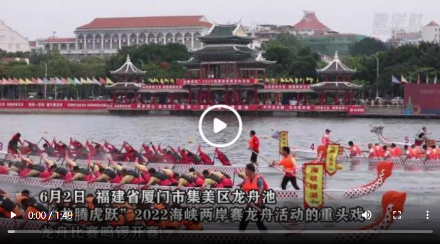 6月2日,福建省廈門市集美區(qū)龍舟池,云旗獵獵,雷鼓嘈嘈。“龍騰虎躍”2022海峽兩岸賽龍舟活動(dòng)的重頭戲——龍舟比賽鳴鑼開(kāi)賽!由在閩臺(tái)胞、臺(tái)商、臺(tái)青組成的17支臺(tái)胞隊(duì)伍,與24支大陸隊(duì)伍御龍逐浪,通過(guò)賽龍舟這項(xiàng)歷史悠久的中華傳統(tǒng)民俗活動(dòng),共同迎接端午佳節(jié)到來(lái)。
