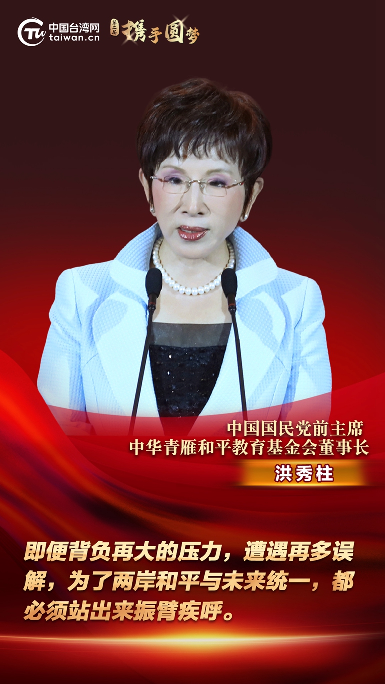 第二屆“攜手圓夢——兩岸同胞交流研討活動(dòng)”7日在北京開幕。中國國民黨前主席、中華青雁和平教育基金會董事長洪秀柱在致辭時(shí)表示,即便背負(fù)再大的壓力,遭遇再多誤解,為了兩岸和平與未來統(tǒng)一,都必須站出來振臂疾呼。