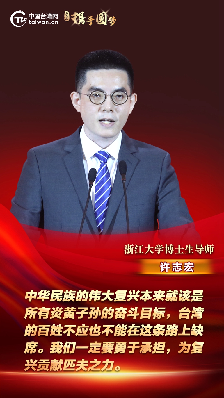 第二屆“攜手圓夢——兩岸同胞交流研討活動(dòng)”7日在北京開幕。浙江大學(xué)博士生導(dǎo)師許志宏在致辭時(shí)表示,中華民族的偉大復(fù)興本來就該是所有炎黃子孫的奮斗目標(biāo),臺灣的百姓不應(yīng)也不能在這條路上缺席。我們一定要勇于承擔(dān),為復(fù)興貢獻(xiàn)匹夫之力。