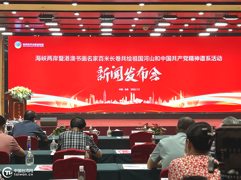 中國(guó)臺(tái)灣網(wǎng)7月2日北京訊 (記者 李莉莉)7月2日,在中國(guó)共產(chǎn)黨成立101周年之際,由兩岸臺(tái)胞民間交流促進(jìn)會(huì)指導(dǎo)、兩岸和平志愿者聯(lián)盟發(fā)起并組織的“海峽兩岸暨港澳書畫名家百米長(zhǎng)卷共繪祖國(guó)河山和中國(guó)共產(chǎn)黨精神譜系活動(dòng)”,在北京臺(tái)灣會(huì)館舉行新聞發(fā)布會(huì)。