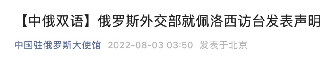 俄羅斯、白俄羅斯外交部就佩洛西訪臺(tái)發(fā)表聲明,全文如下: