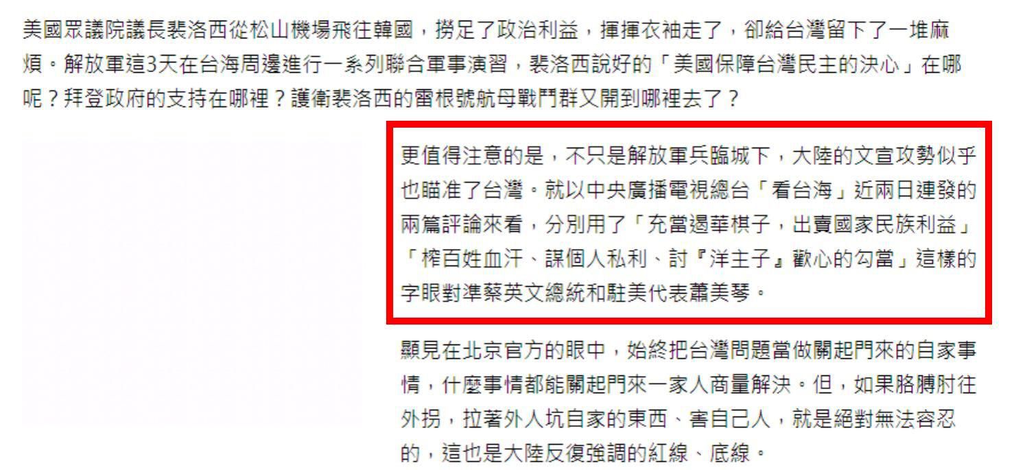 臺(tái)灣中時(shí)新聞網(wǎng)刊發(fā)評(píng)論文章截圖