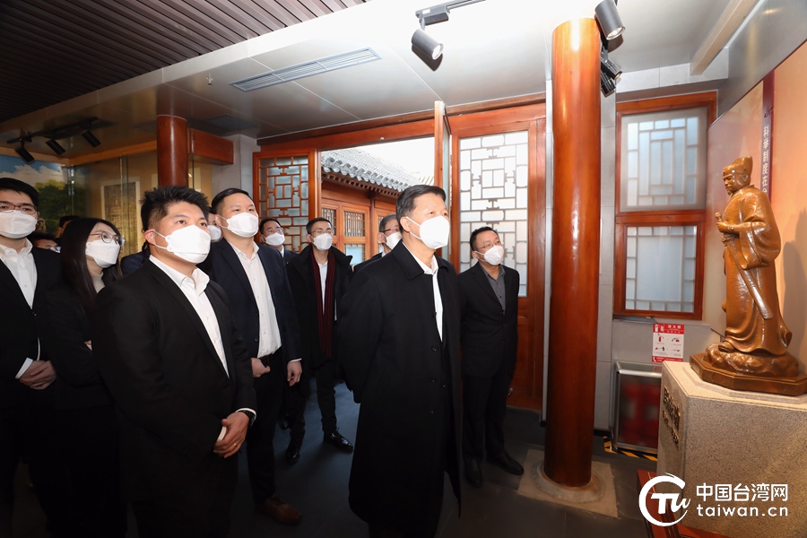座談會前,宋濤與臺灣青年一同參觀臺灣會館“中華魂·京臺情”常設(shè)展覽。(中國臺灣網(wǎng) 尹賽楠 攝)