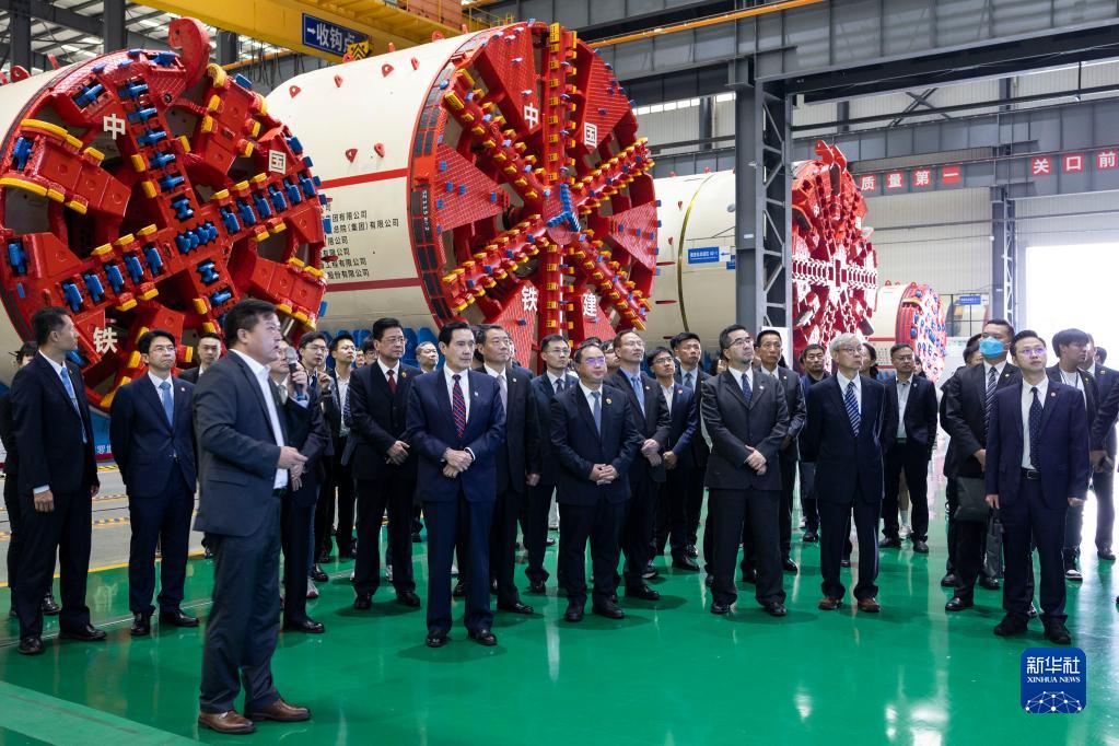 4月2日,在湖南省長(zhǎng)沙市,馬英九先生一行走進(jìn)鐵建重工的車間。新華社記者 陳鍵興 攝