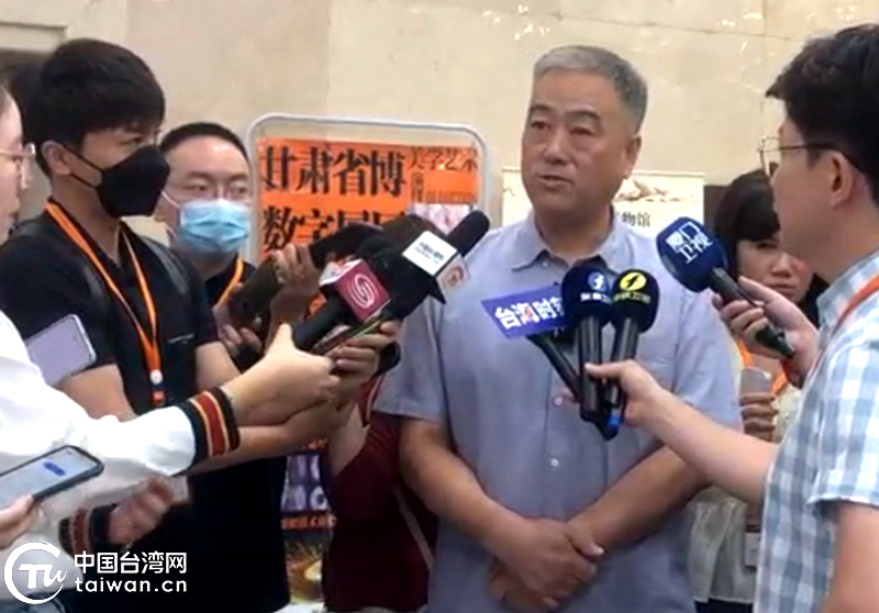 甘肅省博物館館長(zhǎng)賈建威接受兩岸記者采訪。 (中國(guó)臺(tái)灣網(wǎng) 羅凱玲 攝)