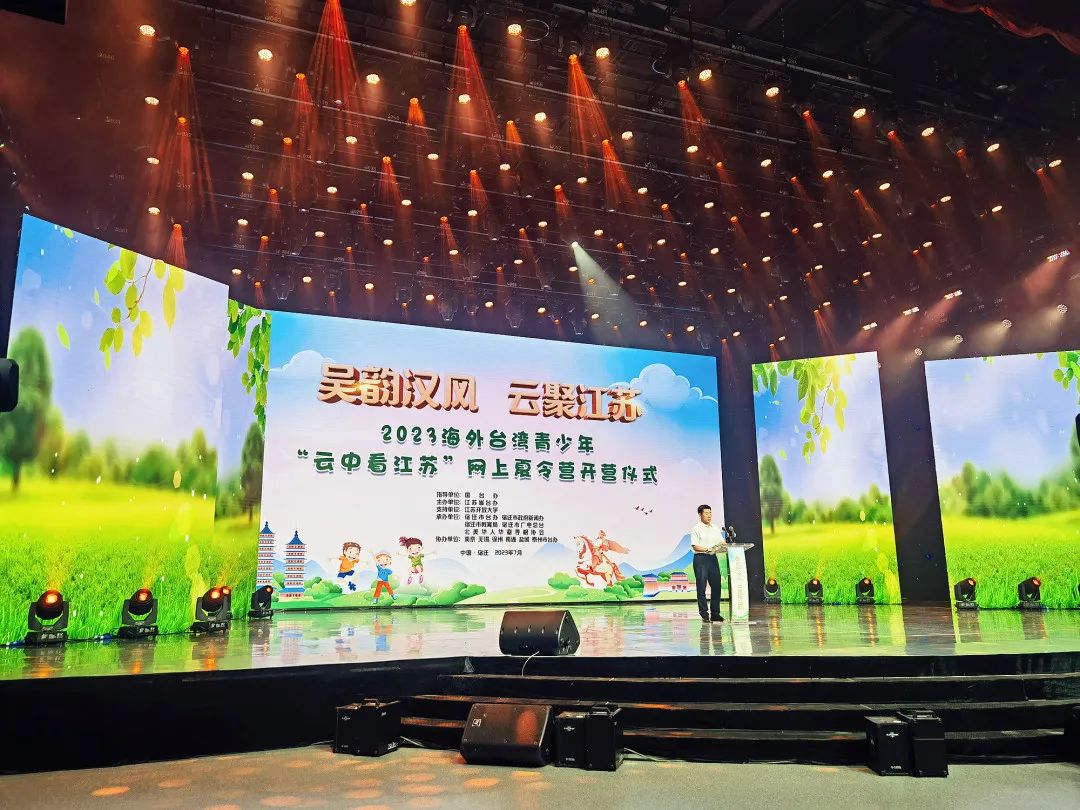 7月21日,“吳韻漢風 云聚江蘇”2023海外臺灣青少年“云中看江蘇”網(wǎng)上夏令營在宿遷開營。來自美國、加拿大、英國、德國、菲律賓、馬來西亞、越南等國家的近百名海外臺灣青少年、老師、家長們及數(shù)千名宿遷本地學生參加線上開營儀式。