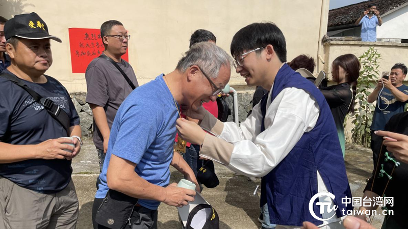 品嘗菇鄉(xiāng)好茶、獲贈(zèng)祈福福袋(圖片來源:麗水市龍泉市臺(tái)辦)
