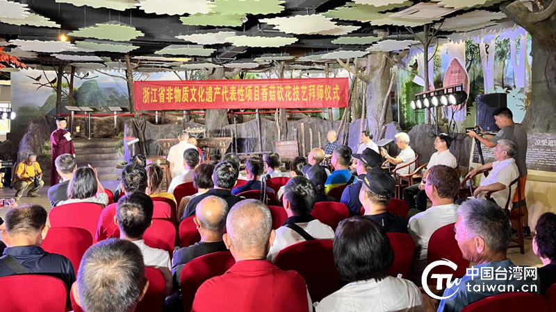 浙江省非物質(zhì)文化遺產(chǎn)代表性項(xiàng)目香菇砍花技藝拜師儀式(圖片來源:麗水市龍泉市臺(tái)辦)