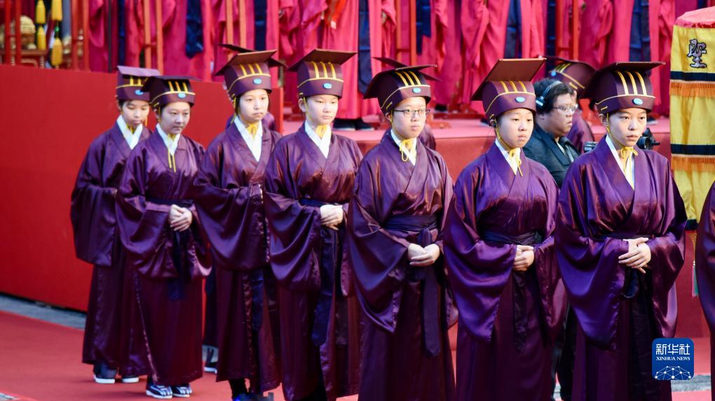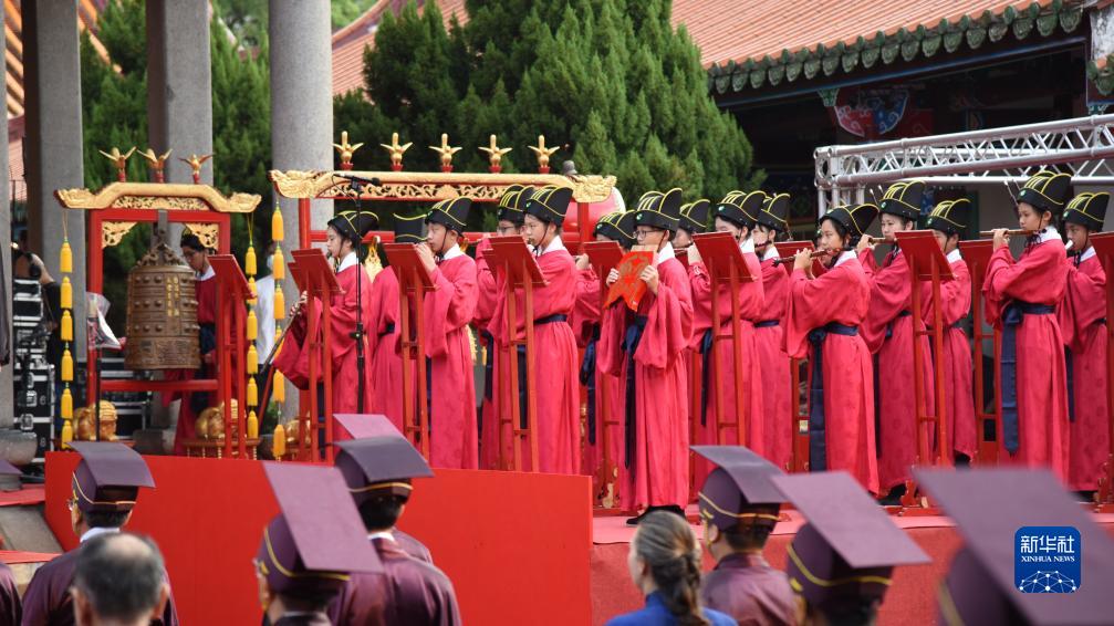 在逾90分鐘的典禮中,全場(chǎng)莊嚴(yán)肅穆,人們?nèi)褙炞。典禮以盛大恢宏的場(chǎng)面、復(fù)雜嚴(yán)謹(jǐn)?shù)膬x程、行云流水的表演,再現(xiàn)了從古流傳至今的祭祀禮儀。秉持尊師重教傳統(tǒng),參與典禮的執(zhí)事禮生、樂(lè)生、佾生,大多數(shù)是當(dāng)?shù)刂行W(xué)生。