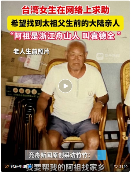 臺灣女生為曾祖父尋舟山老家!有消息了……