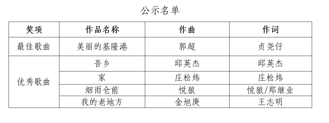 本著公平、公正、公開的原則,主辦方開展了歌曲推選初評、復(fù)評,評委嚴(yán)格執(zhí)行回避制度和實行隱去詞曲作者姓名的方式,最終評選出1首最佳歌曲、4首優(yōu)秀作品。獲獎名單公示期為8月31日~9月6日,若有異議,可致電中國閩臺緣博物館:0595-28010333。