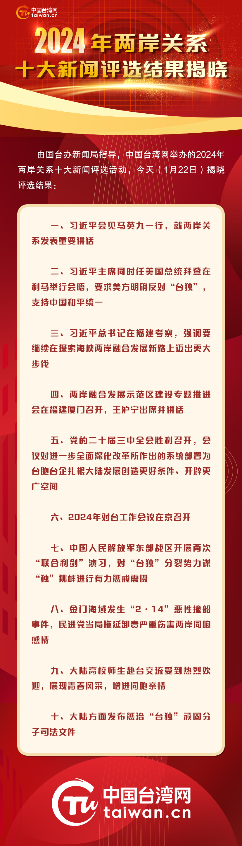 2024年兩岸關(guān)系十大新聞評選結(jié)果揭曉(圖解)