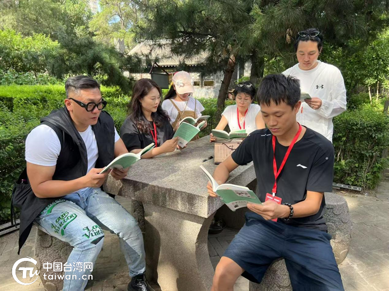 臺(tái)灣青年媒體人在蕭紅故居的花園中共同誦讀。(中國臺(tái)灣網(wǎng)記者 劉琳 攝)