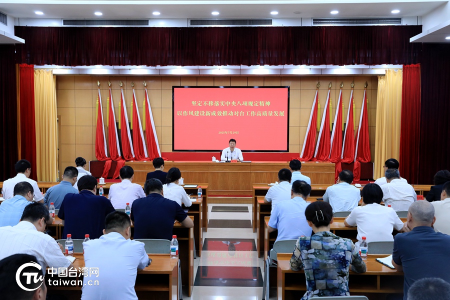 宋濤表示,開展深入貫徹中央八項規(guī)定精神學(xué)習(xí)教育,是習(xí)近平總書記親自點題、親自部署的一項重要工作,也是今年黨建工作的一項重點任務(wù)。當前,臺海形勢復(fù)雜嚴峻。中央臺辦深入貫徹中央八項規(guī)定精神學(xué)習(xí)教育和巡視整改兩項重要的政治任務(wù)同步推進,時間緊、任務(wù)重、要求嚴,全辦黨員干部要堅持不懈用習(xí)近平新時代中國特色社會主義思想凝心鑄魂,學(xué)深悟透習(xí)近平總書記關(guān)于對臺工作的重要論述、新時代黨解決臺灣問題的總體方略,把開展學(xué)習(xí)教育同貫徹黨中央對對臺工作的決策部署和完成各項工作結(jié)合起來,堅持以上率下,壓實政治責(zé)任,堅持從嚴從實,抓好學(xué)習(xí)教育,加強理論武裝,整改突出問題,強化警示教育,注重糾樹并舉,健全制度機制,推進作風(fēng)建設(shè)常態(tài)化長效化,以作風(fēng)建設(shè)新成效推動對臺工作高質(zhì)量發(fā)展,為全面推進中華民族偉大復(fù)興、實現(xiàn)祖國統(tǒng)一大業(yè)貢獻力量。