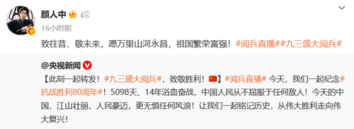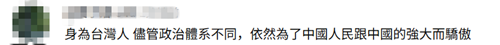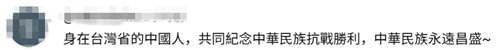 臺灣網(wǎng)友在相關(guān)內(nèi)容下留言表示,“作為一個堂堂正正的中國人,今天真的很驕傲”,“身在臺灣省的中國人,共同紀(jì)念中華民族抗戰(zhàn)勝利,中華民族永遠昌盛”,“身為臺灣人,盡管政治體系不同,依然為了中國人民跟中國的強大而驕傲”。
