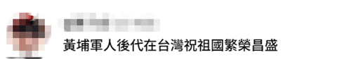 還有人表示,“黃埔軍人后代在臺灣祝祖國繁榮昌盛”。