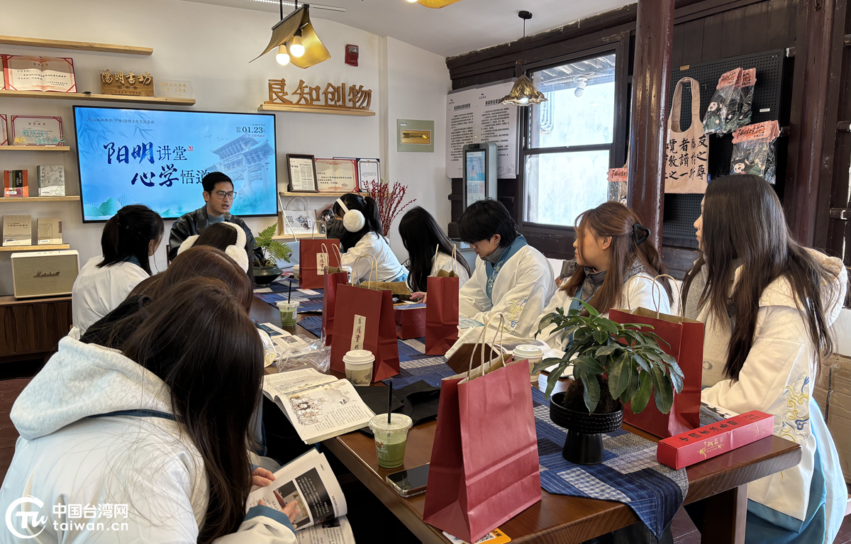 臺灣青年在陽明書坊與陽明文化推廣者圍坐交流。(中國臺灣網(wǎng)記者 劉琳 攝)