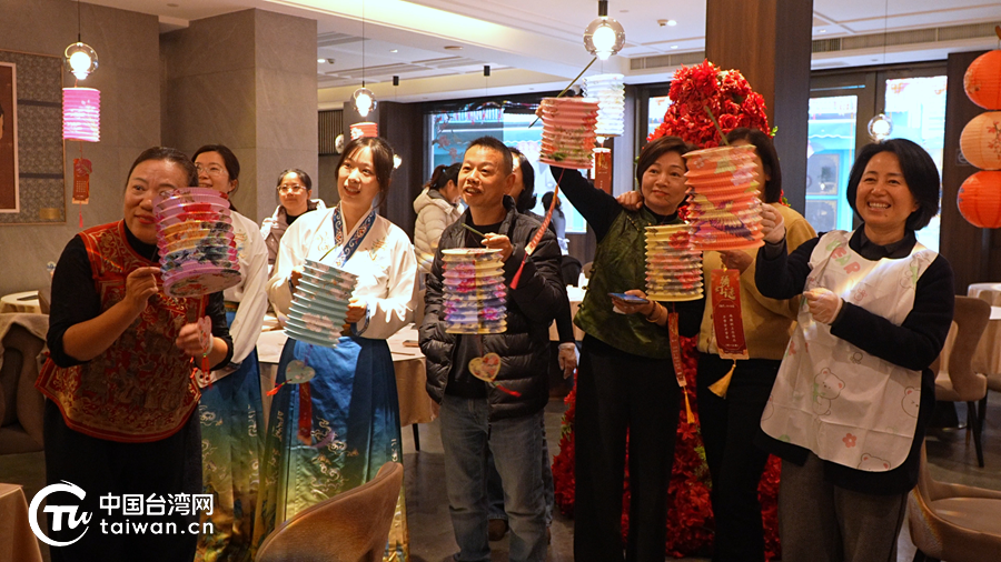 奉化臺胞與臺灣南投縣鄉(xiāng)親們連線共度元宵。(中國臺灣網(wǎng)發(fā))