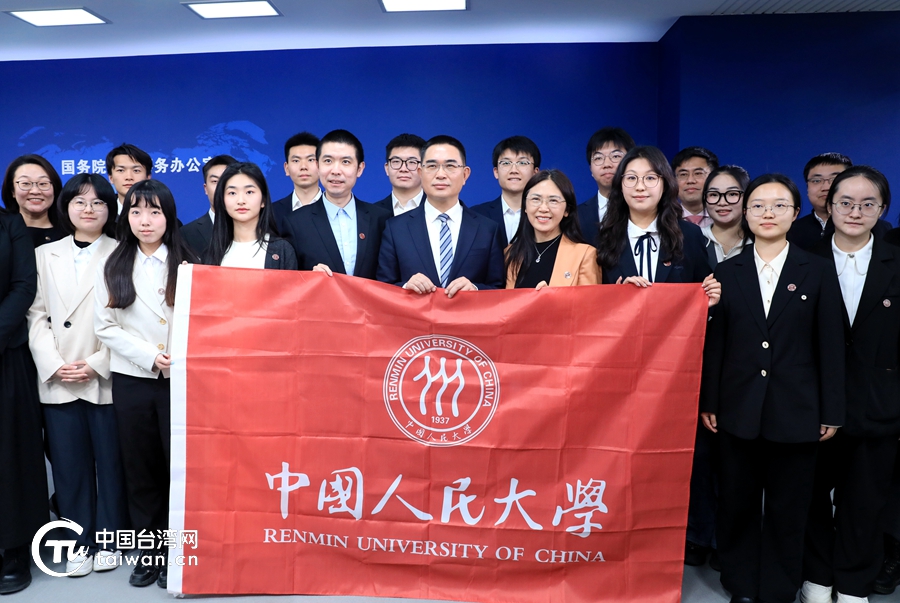 發(fā)布會(huì)后,陳斌華與前來觀摩學(xué)習(xí)的中國(guó)人民大學(xué)兩岸師生代表合影。(中國(guó)臺(tái)灣網(wǎng)記者 尹賽楠 攝)