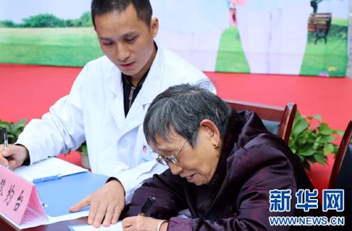 2016年11月11日,重慶沙坪壩區(qū)新橋社區(qū)衛(wèi)生服務(wù)中心集中舉辦“家庭醫(yī)生”服務(wù)簽約儀式。圖為居民代表簽約家庭醫(yī)生現(xiàn)場(chǎng)。(圖片來(lái)源:新華網(wǎng))