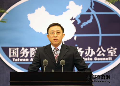 國(guó)務(wù)院臺(tái)灣事務(wù)辦公室今天上午10點(diǎn)在國(guó)臺(tái)辦新聞發(fā)布廳舉行例行新聞發(fā)布會(huì)。本次新聞發(fā)布會(huì)由新聞局局長(zhǎng)、新聞發(fā)言人楊毅主持。(趙輝 攝)