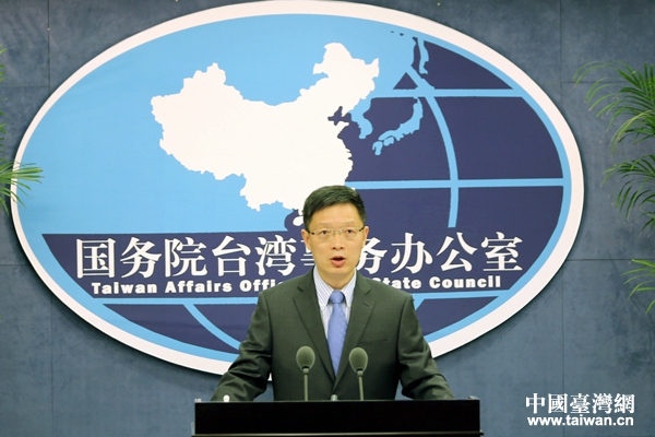 國務(wù)院臺灣事務(wù)辦公室今天上午10點在國臺辦新聞發(fā)布廳舉行例行新聞發(fā)布會。本次新聞發(fā)布會由國臺辦新聞局副局長、新聞發(fā)言人安峰山主持。(中國臺灣網(wǎng) 郭曉康 攝)