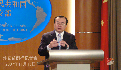 2007年11月13日,外交部發(fā)言人劉建超舉行例行記者會,就溫家寶總理訪問新加坡及出席東盟系列會議、中日東海磋商、六方會談、緬甸問題、伊朗核問題等回答記者提問。