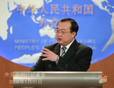 2008年1月31日下午,外交部發(fā)言人劉建超舉行例行記者會(huì),就中國南方雪災(zāi)、中國出口食品安全、朝核、南沙群島、蘇丹達(dá)爾富爾等問題回答記者提問。