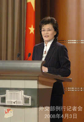 2008年4月3日下午,外交部發(fā)言人姜瑜舉行例行記者會,就北京奧運會及火炬?zhèn)鬟f、穆沙拉夫總統(tǒng)訪華、伊朗核等問題答問。