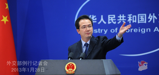 2013年1月28日,外交部發(fā)言人洪磊主持例行記者會(huì)。