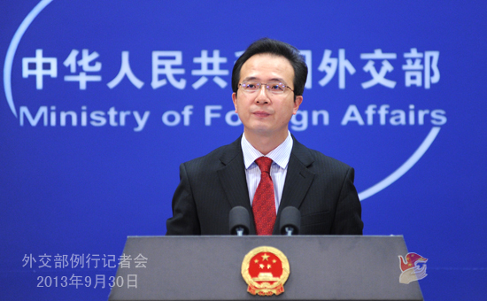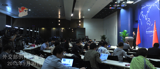 2013年9月30日,外交部發(fā)言人洪磊主持例行記者會(huì)。