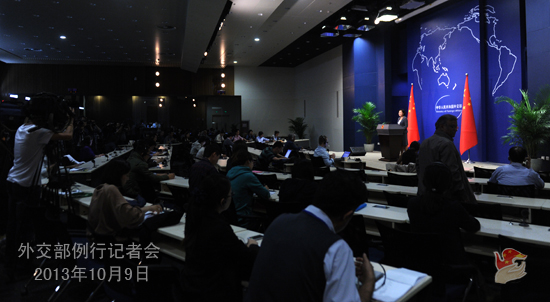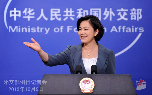 2013年10月9日,外交部發(fā)言人華春瑩主持例行記者會(huì)。