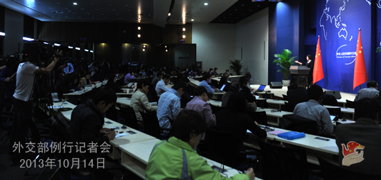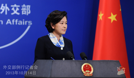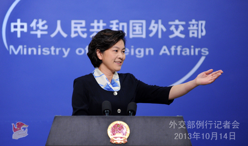 2013年10月14日,外交部發(fā)言人華春瑩主持例行記者會(huì)。