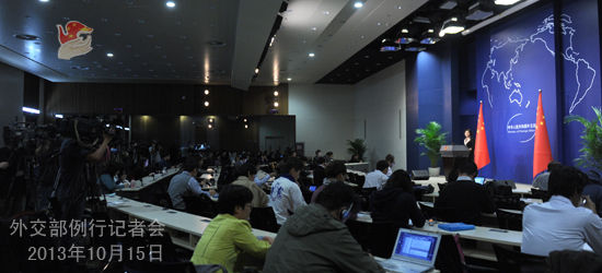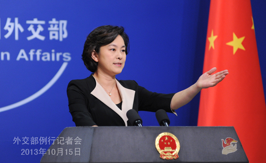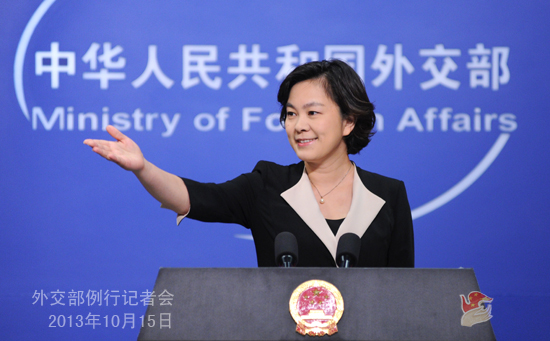 2013年10月15日,外交部發(fā)言人華春瑩主持例行記者會。