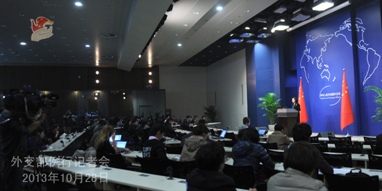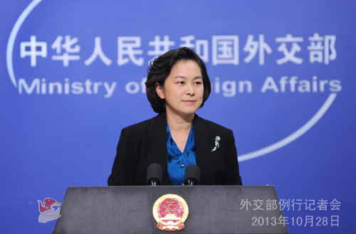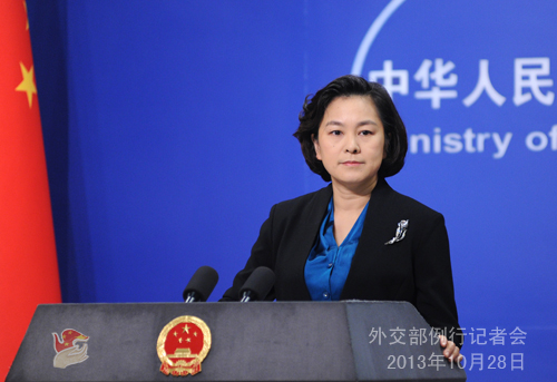2013年10月28日,外交部發(fā)言人華春瑩主持例行記者會。