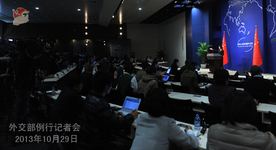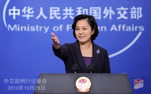 2013年10月29日,外交部發(fā)言人華春瑩主持例行記者會。