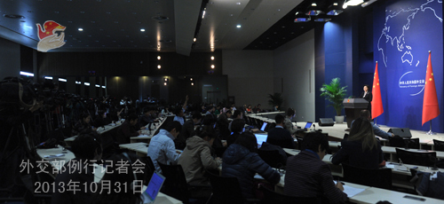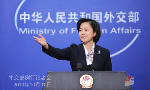 2013年10月31日,外交部發(fā)言人華春瑩主持例行記者會。