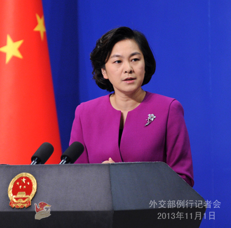 2013年11月1日,外交部發(fā)言人華春瑩主持例行記者會(huì)。